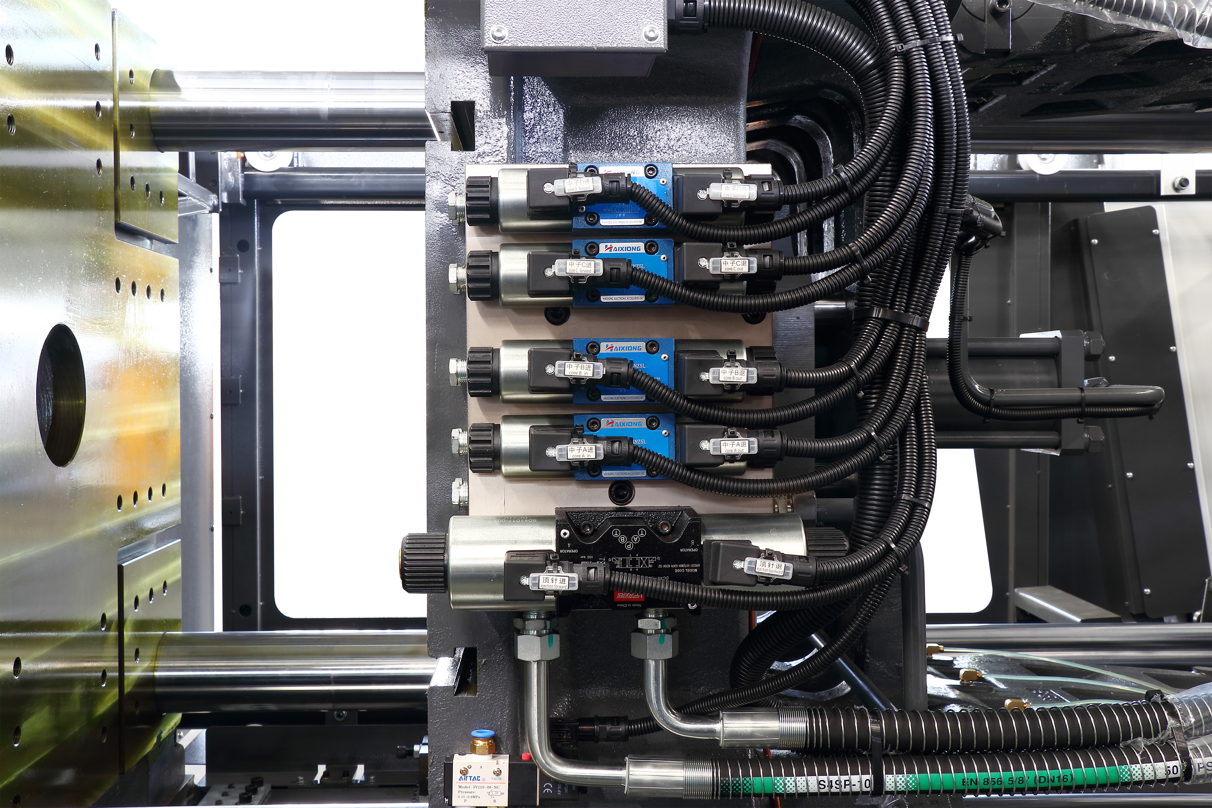 မှိုအပူချိန်ထိန်းချုပ်ရေး- ပစ္စည်းမျက်နှာပြင်၏အရည်အသွေးကိုသေချာစေရန်မှိုအပူချိန်နှစ်ခုကို သီးခြားထိန်းချုပ်ပါ။