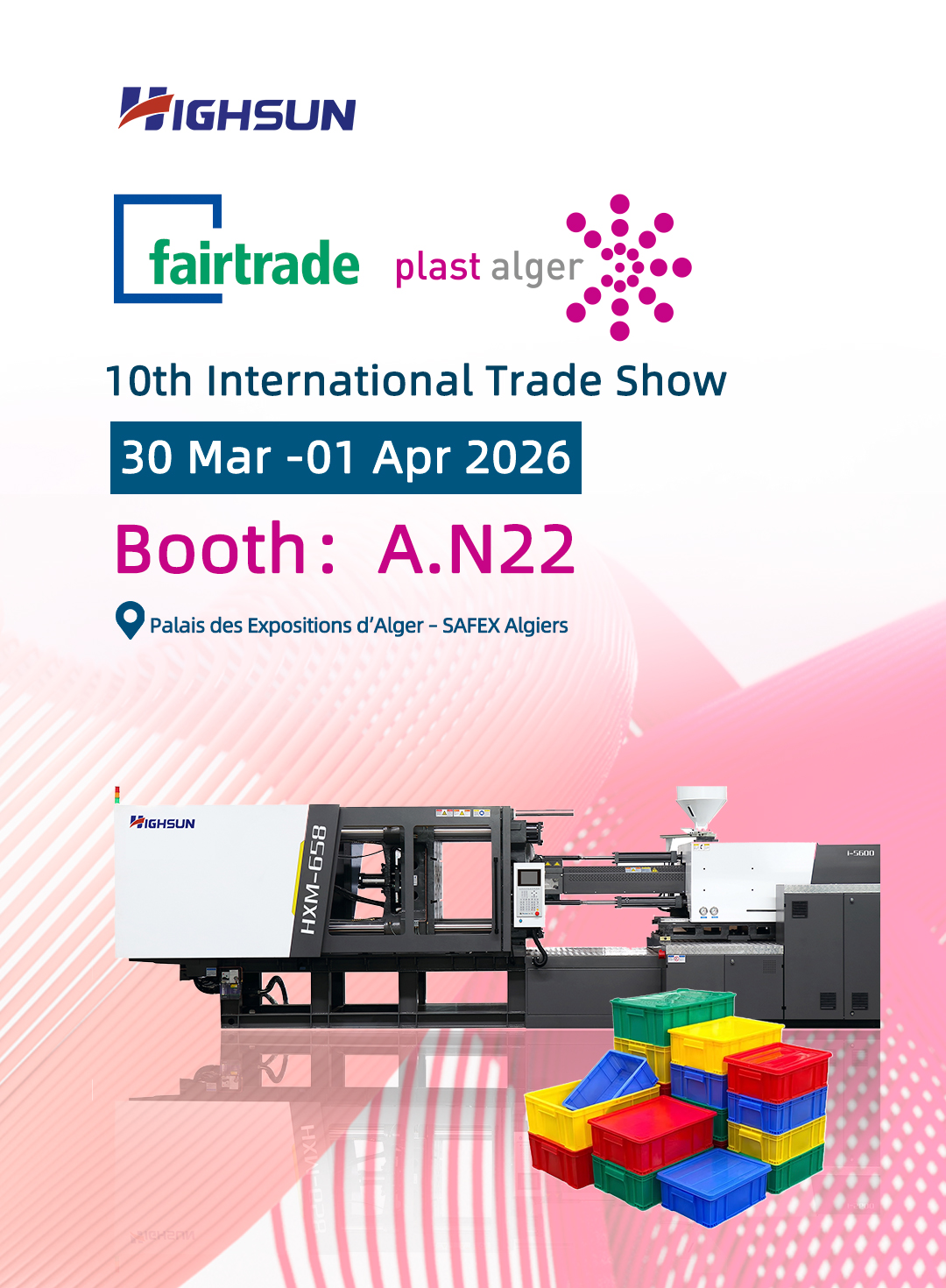 | HIGHSUN သည် Plast Alger 2026 တွင် ကြီးကျယ်စွာ ပါဝင်ပါသည်။ ကျွန်ုပ်တို့သည် Booth A.N22 သို့ ပင်မဆေးထိုးသည့်ကိရိယာများနှင့် ပြီးပြည့်စုံသောဖြေရှင်းချက်များကို ယူဆောင်လာပါသည်။ မြောက်အာဖရိက ပလတ်စတစ်နှင့် ရော်ဘာဈေးကွက်ကို နက်နက်ရှိုင်းရှိုင်း မွေးမြူ၊ တိကျသော အသိဉာဏ်ရှိသော ထုတ်လုပ်မှုဖြင့် အယ်လ်ဂျီးရီးယား၏ စက်မှုအဆင့်မြှင့်တင်မှုကို အားကောင်းစေခြင်း၊ နှင့် မြို့ပတ်ရထားစီးပွါးရေးအတွက် အခွင့်အလမ်းသစ်များကို အတူတကွရှာဖွေရန် ပူးပေါင်းဆောင်ရွက်မှုကို လာရောက်ဆွေးနွေးရန် သင့်အား လေးစားစွာ ဖိတ်ကြားအပ်ပါသည်။ |